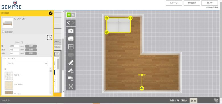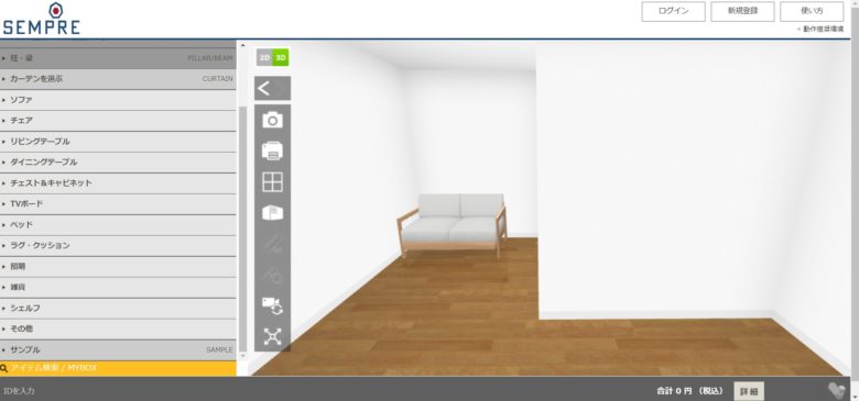 私が使用したのはSEMPREの3Dインテリアシミュレータです。