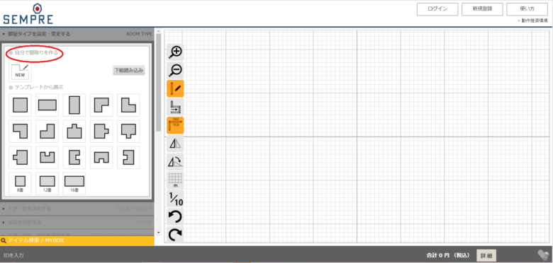 手順としては、まず「自分で間取りを作る」というところから、自分の住む家の間取りを描きます。