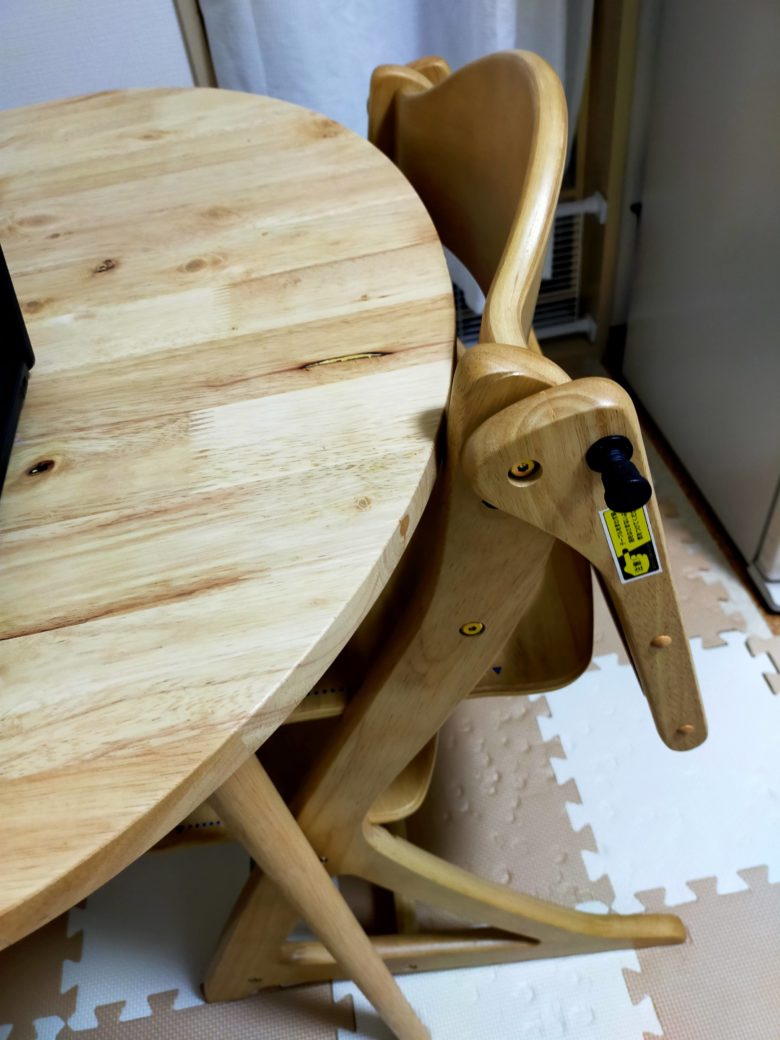 ハイローチェアからの買い替えを検討した理由の一つに、子どもが着席時にガタガタと揺らして遊んでしまうことがありました。