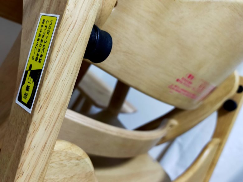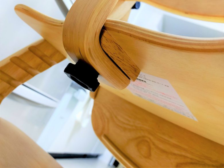 さらに言えば、すくすくチェアスリムはガード部分も木製なので、ガードがベルト状の物よりもお手入れしやすいと言えます。しかもこのガード、下部には手で回せる大き目のねじがついていて、簡単に取り外せます。工具要らず!