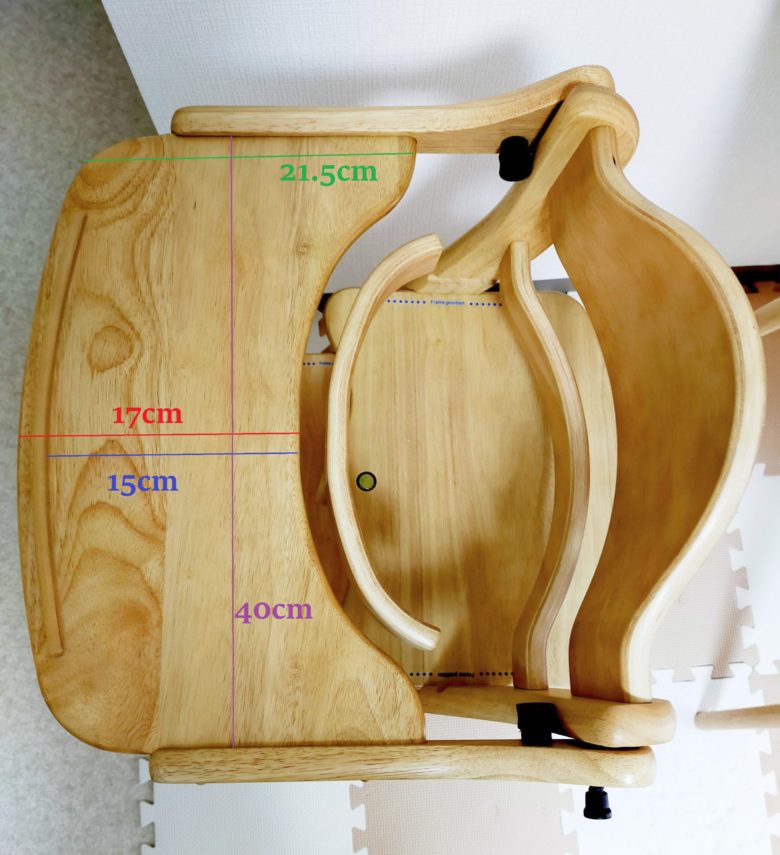 すくすくチェアスリムプラスは幅47cm。これは椅子の最大幅で、左右のテーブルの簡単ロック部分を含んだ端から端の長さになります。実際置く時に気になるのは足やテーブルの幅だったりしますよね。
