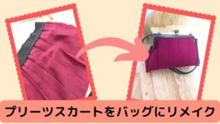 不用品の再活用 古着リメイク プリーツスカート⇒がま口バッグ