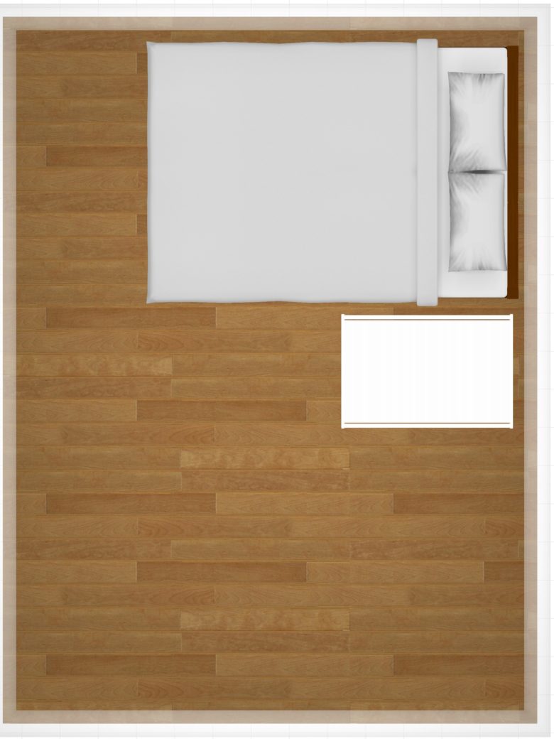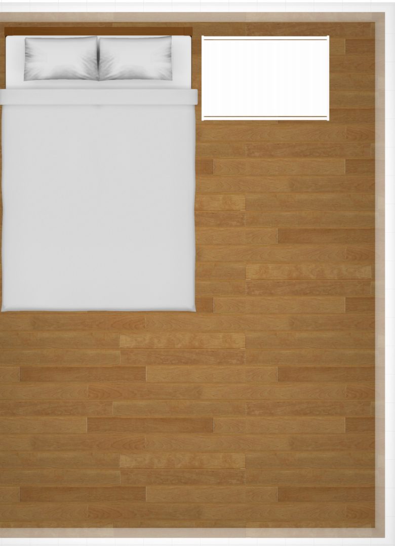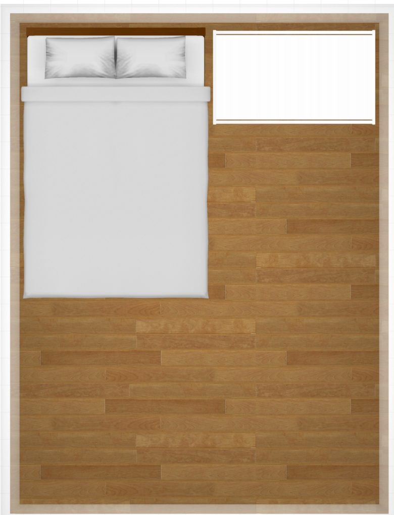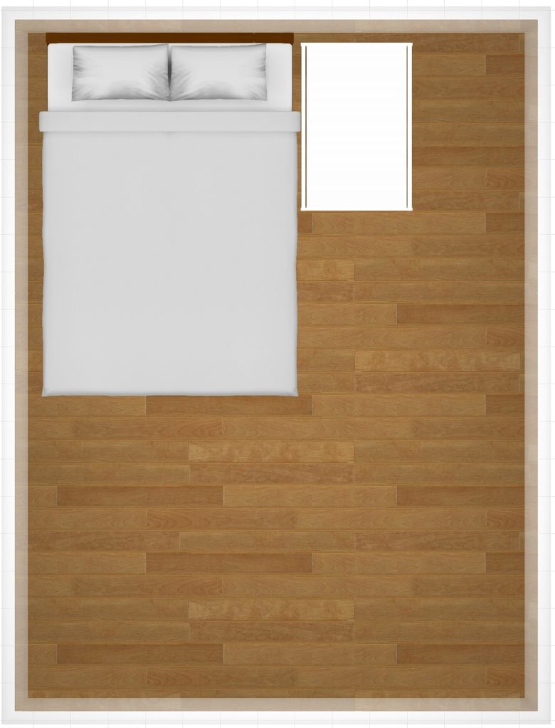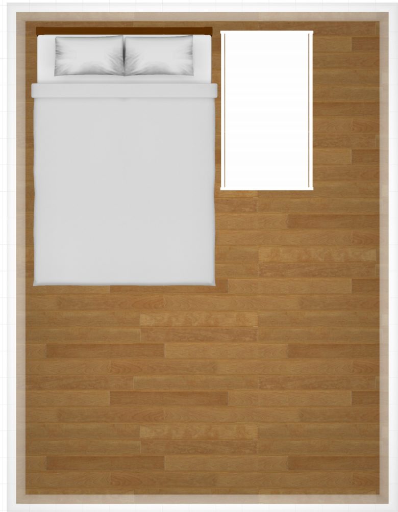今回はこのマットレスの大きさで図を表示してシミュレーションしていきますので、実際はフレームやヘッドボードなどの大きさを含めて一回り大きい場合がほとんどではないかと思います。