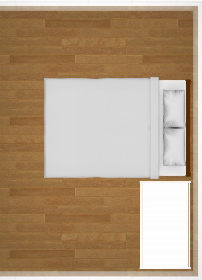 それでは最後に、ベッドの奥にスペースを設けた場合のレイアウトを見てみましょう。