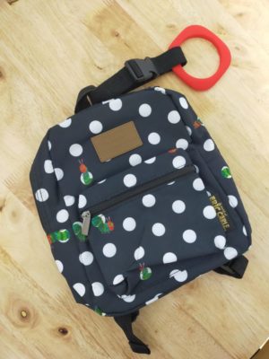 それから、15センチほどの長さだと、使わないときはそのままリュックサックにつけっぱなしにして垂らしておいても大丈夫なのが良かったです。いちいちつけたり外したり、収納したりは手間なので。もちろんつけたまま、抱っこも問題ありません。