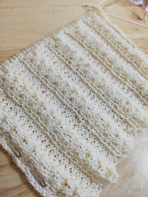 こちらは後ろ身頃で編んだ二種類の模様を続けて編んでいきます。