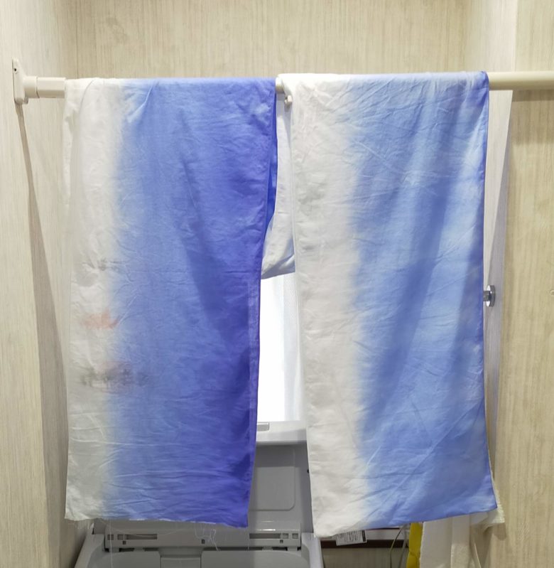 今回はグラデーション染めだったため、手順が多く時間もかかりましたが、単色に染める場合はもっと簡単です。真っ白いさらしも自分の好きな色に染めて、別の物に活用してみてはいかがでしょうか?