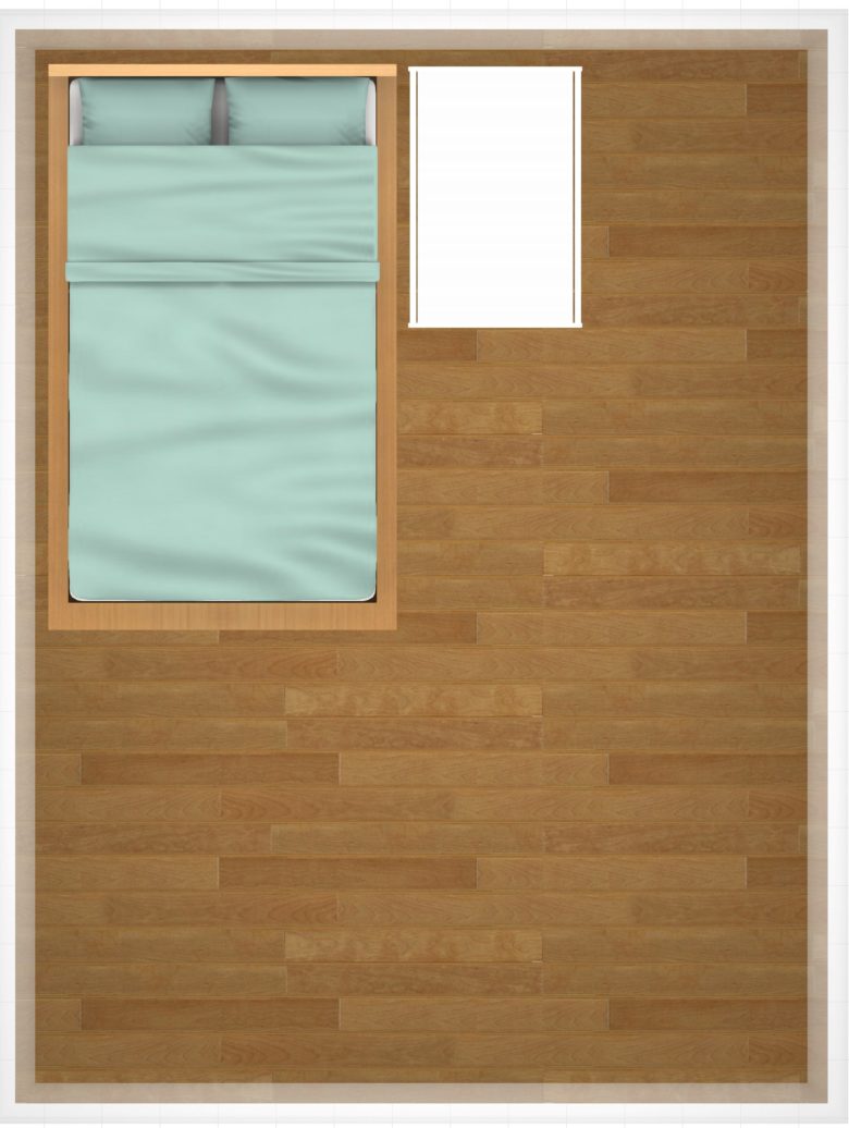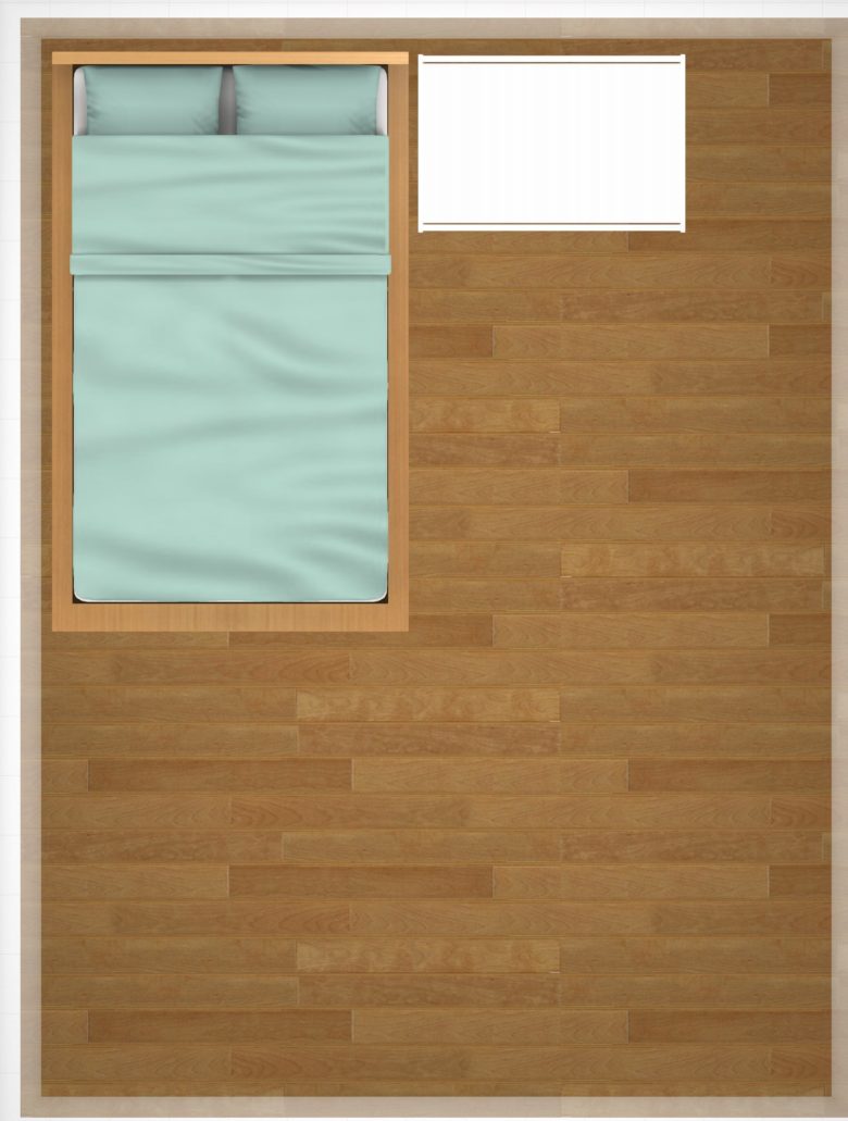 今回はこのマットレスの大きさで図を表示してシミュレーションしていきます。実際はフレームやヘッドボードなどの大きさを含めて一回り大きい場合がほとんどですのでご注意ください。