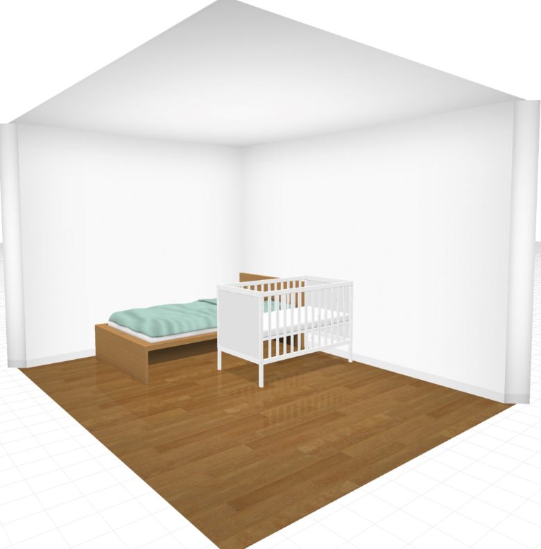 小さな家に住む人にとってはベビーベッドを買うか買わないかは重要テーマですよね。そして、ベビーベッドを置くとしたら寝室のレイアウトはどうなるのかも気になるところ。