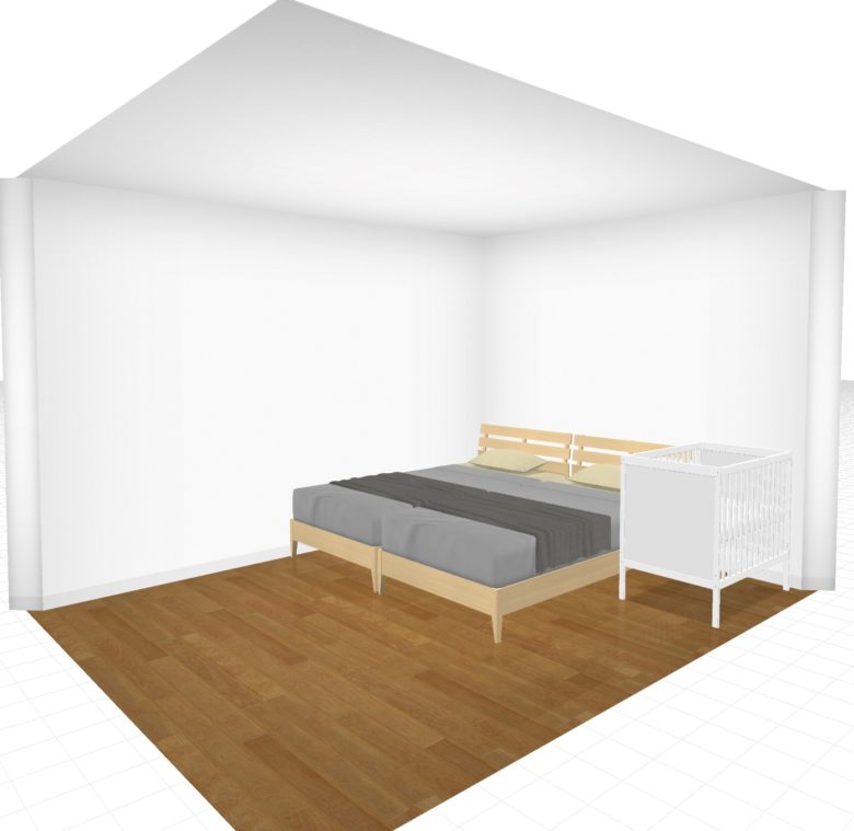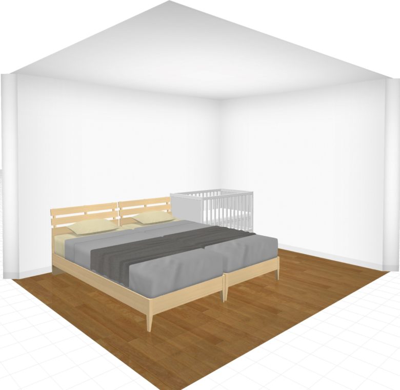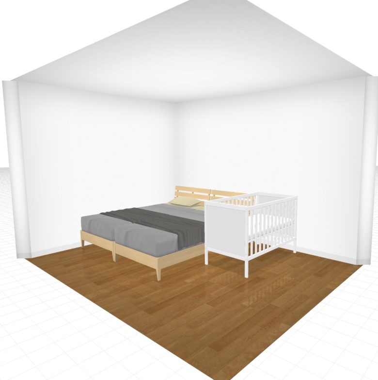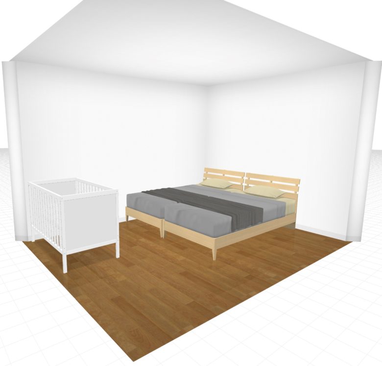 小さな家に住む人にとってはベビーベッドを買うか買わないかは重要テーマですよね。そして、ベビーベッドを置くとしたら寝室のレイアウトはどうなるのかも気になるところ。