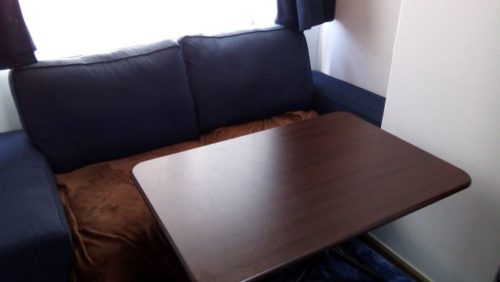 並んで座る場合の最低限必要とされる幅より狭いですが、写真のソファに座って横並びで使っていてもテーブルの広さに問題は感じなかったです。