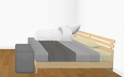 高身長の方やまっすぐ寝て足がはみ出る場合は、下の図のように、高さがあうスツールやクッションなどを足元に足すことで、長さを補うことができます。