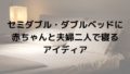 我が家でも、出産準備の段階でセミダブルベッドに私と子どもが寝て、シングルサイズの布団に夫が寝るという案が出ました(残念ながら夫のいびきの為、却下となりました)。